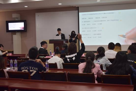 中场休息过后,迎来环保知识抢答游戏环节,同学们踊跃参与竞猜,在收获精美奖品的同时也拓展了自己的环保知识。随后,现场播放关于老员工环保意识调查采访的视频,引起了在场同学的强烈共鸣。
