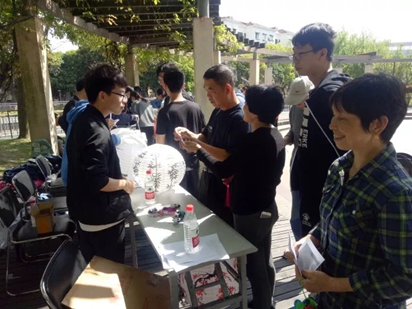展示区刚布置好,便有锻炼的老爷爷、老奶奶被精美的灯笼吸引过来,志愿者邀请他们来猜灯谜,并向他们介绍灯谜文化。随着时间的推移,越来越多的市民被我们的活动吸引了过来,看彩灯,猜灯谜,好不热闹。志愿者们在行人猜出谜底后,还为他们介绍有关谜底的科学文化知识,现场非常热闹。