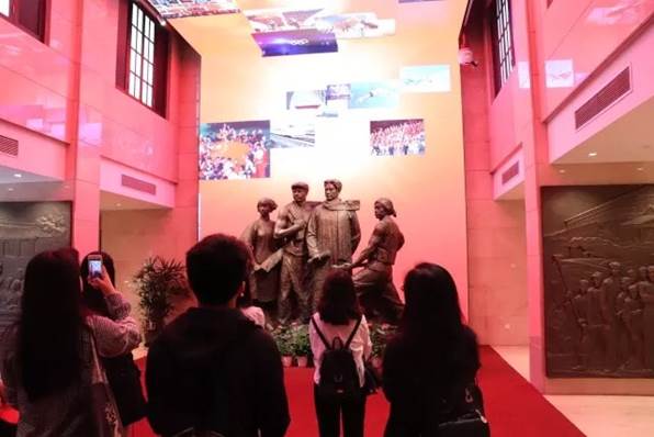 随后,小组陆续参观了人物展厅、平民女校、党章陈列室……这些珍贵的影像、图文、实物资料着实让小组成员大开眼界。泛黄的《共产党宣言》,革命先辈们用过的印章,甚至是家书,呈现在我们面前,吸引着同学们驻足久读。而高科技的投影以及电子屏的使用,将历代党章,一本一本地展现在我们面前。党章是一个政党为保证全党在政治上,思想上的一致和组织上,行动上的统一所制定的章程,党章是政党的宗旨和行为规范。从1921到2017,党章的修改党章的历次制定、修改,在保持党章总体框架不变的前提下,对党章的一些内容作了适当修改或补充完善,提出了一些新思想、新观点,做出了一些新规定,才能有助于党开启伟大事业的新篇章,激活推动历史进步的巨大能量,体现了中国共产党改革创新和与时俱进的精神。