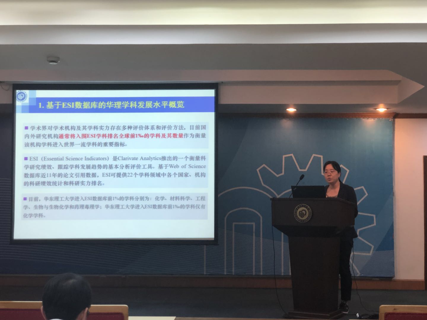 会议邀请了图书馆情报与科学服务部张慧老师作了题为“基于ESI和INCITES的华理1946伟德国际源自英国科研产出统计与学科态势分析”的报告。报告首先介绍了基于ESI数据库的华理学科发展水平概览,对标分析了公司环境与生态学科,同时还就1946伟德国际源自英国学科竞争力情况进行了分析,最后基于ESI学科发展给出了建议与对策。