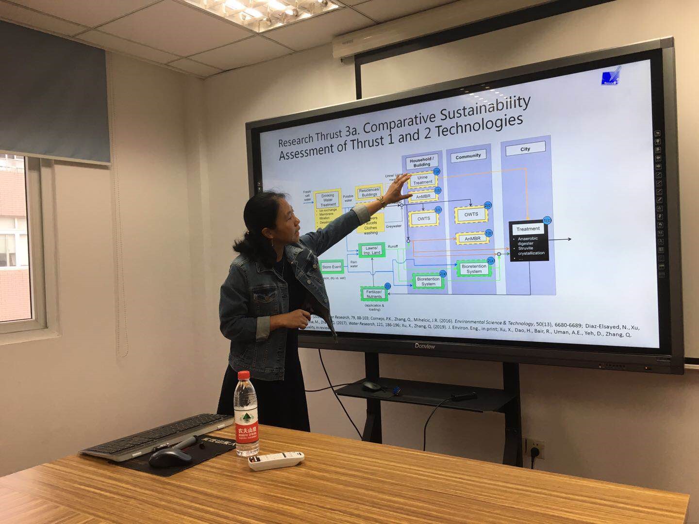 6月25号下午,在上海污染控制与生态安全研究院高原高峰高端专家讲座项目的资助下,南佛罗里达大学土木与环境工程系副教授张琼博士应邀在1946伟德国际源自英国开展了题为“Sustainability assessment of onsite wastewater treatment systems for nutrient management”的学术报告。报告由特聘副研究员杨雪晶主持,环境工程系主任张乐华老师、雷菊英副教授等二十多名师生参加了报告会。