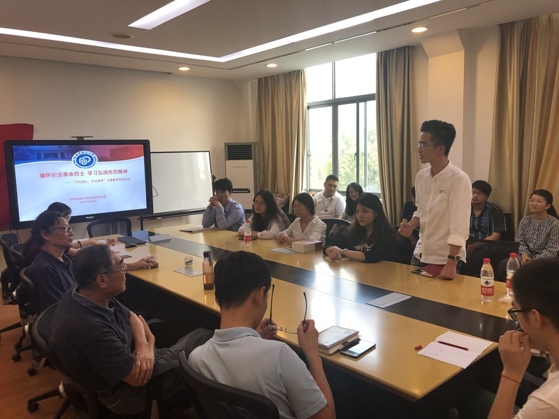 随后,吴生老师也向同学们讲述了父亲和自己经历。吴老师的父亲早年参加新四军,在抗日战争中为新中国的建立献出了宝贵的生命,当时吴生老师仅3岁,后由姑父姑母抚养。吴老师回顾了自己成长经历中的不易,并一直强调自己是党和政府养大的。他告诉大家要懂得“知恩图报”,将“为人民服务”融入生活中的点点滴滴,在平凡的岗位上无私奉献自己,关心他人。同时他也身体力行,四十年如一日,始终兢兢业业地从事教学科研工作,甚至拿出自己的烈士家属抚恤金默默地坚持资助家庭经济困难员工,帮助他们完成学业,令同志们感动不已。