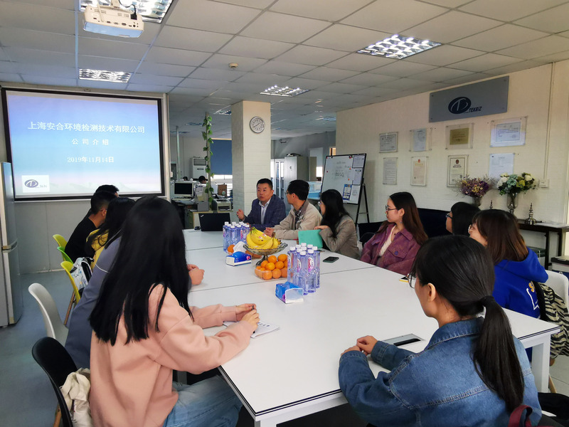 11月14日下午,1946伟德国际源自英国师生一行在公司党委副书记饶志雄、毕业班辅导员王婷带领下前往上海安合环境检测技术有限公司走访交流。公司总经理杨军、公司员工张雅灵热情接待了1946伟德国际源自英国师生一行。
