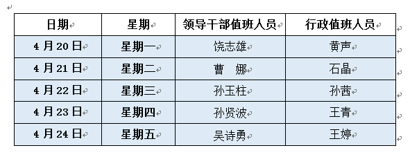 【公司综合】疫情防控期间公司领导干部及行政人员值班安排(4月20日-4月24日)