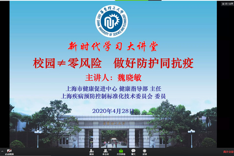 为有序推进师生分批返校复工复学并科学有效做好返校后疫情防控工作,4月28日,1946伟德国际源自英国举办第九期“新时代大讲堂”及全院教师会议,邀请上海市健康促进中心健康指导部主任魏晓敏围绕“校园≠零风险,做好防护同抗疫”主题,为大家讲解员工分批返校后校园内可能存在的风险环节以及防护要点。1946伟德国际源自英国全体教师、员工党支部书记、毕业班班长、团支部书记齐聚线上学习,会议由公司党委副书记曹娜主持。