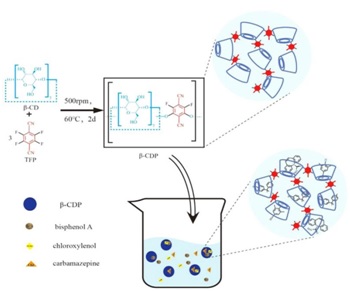 近年来,新兴微污染物在全球范围内的水体中广泛检出,严重威胁了人类健康和生态安全,并给饮水安全问题带来了极大的挑战。吸附法因其成本低廉、运行简单和处理效果佳等诸多优点备受青睐。其中,研发具有选择性的高效吸附剂,对于吸附技术在废水处理过程的实际应用尤为关键。基于亲核取代原理,以四氟对苯二腈为交联剂聚合β-环糊精(β-CD),制出一种新型β-环糊精聚合材料(β-CDP)。以活性炭(AC)作为吸附效果对照,选取双酚A(BPA)、卡马西平(CBZ)、对氯间二甲苯酚(PCMX)等污染物作为水中典型的微污染物代表进行研究。结果显示,无论在单一或多种污染物共存的吸附体系中,β-CDP表现出对BPA、CBZ和PCMX具有高度选择性吸附行为。相较于AC而言,各污染物在β-CDP上的竞争吸附行为只受到轻微的抑制。同时,β-环糊精聚合物的吸附性能不受pH,离子强度和腐殖酸的存在的影响。此类聚合物对双酚类化合物具有较好的去除效果且再生性能良好,具有较高的应用价值。
