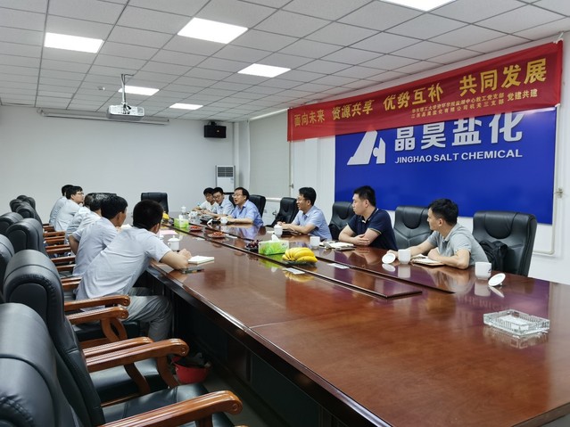 签约仪式后,姜任平带领盐湖中心教工党支部同志参观了晶昊盐化公司控制中心。随后,盐湖中心相关科研人员与江西盐业集团公司副总经理万李,晶昊盐化公司总经理雷和波、副总经理肖华等领导就目前双方已合作开展的产学研项目展开深入交流。万李充分肯定了盐湖中心在推动校企合作、产学研深度融合上所做的大量工作和研究成果。他表示,为接续开展好后续研究工作,集团公司、晶昊公司将密切配合,推动产学研各个项目迈上新台阶。国家盐湖资源综合利用工程技术研究中心副主任宋兴福教授表示接下来将进一步加强校企合作,推动产学研项目创新发展。