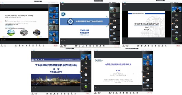 本次论坛立足国际科技前沿,围绕零碳化学品、低碳化工、CO2高质化、碳溯源与管理等热点研究领域以及行业产业的技术难题,展开深入的探讨和交流。8月26日上午,特邀美国密西根大学的徐明教授、复旦大学王玉涛教授、公司王辅臣教授、胡军教授及香港科技大学朱尚乾博士分别做了“碳中和与生命周期思想”、“工业碳中和标准体系之刍议”、“碳中和愿景下煤化工的挑战与机遇”“工业高温烟气的碳捕集和原位转化利用”和“电催化界面的红外光谱学研究”的主题报告。