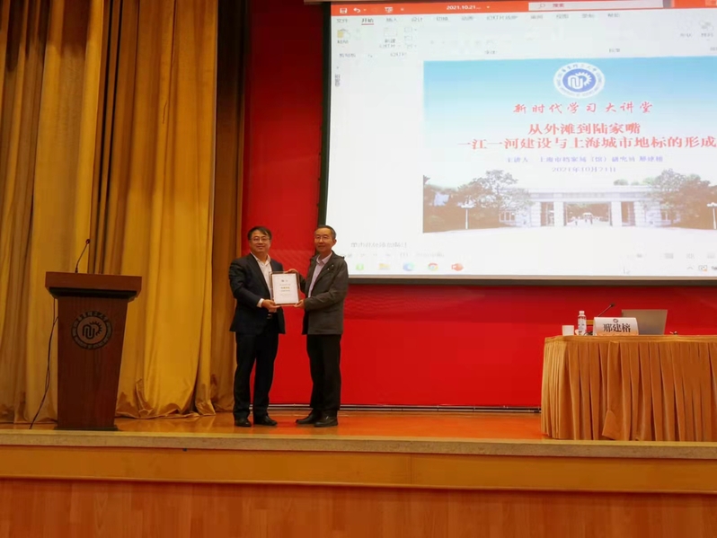 邢建榕研究员通过一件件珍贵的档案资料和一张张历史图片,为大家展示了上海著名地标——外滩和陆家嘴的形成变迁,并从历史维度、文化传承的角度,解读了上海“一江一河”建设与上海城市发展的关系以及城市格局和城市风貌的形成过程,引导师生进一步了解上海滨江两岸的历史底蕴,领会浦东开发开放的历史意义。