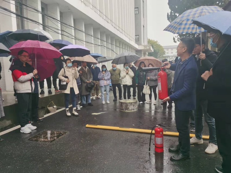 段凯洋老师就树立消防责任意识、清除消防安全隐患、初期火灾扑救、消防安全器材的使用、火灾应急疏散常识等进行了全面演讲,并结合灭火器使用的“提拔握压”四字口诀,为大家示范了干粉灭火器和二氧化碳灭火器的使用要领。于建国教授强调了学习消防安全知识的重要性,并指出指导教师和研究生要时刻将安全意识融入学习、生活、科研工作中,方能防范于未“燃”,并与员工一起参加灭火器的实战演练。