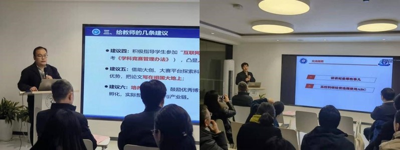 司忠业为公司全体教师做了题为“华理创新创业教育的任务与举措”的报告,从“高校创新创业教育形势与任务”、“华理创新创业教育理念与架构”及“双创教育‘十四五’建设目标与举措”三个方面进行深入解读,帮助教师们更好了解和指导创新创业教育。杨艳生以“遵纪守规守法,做廉洁高校人”为题,介绍了公司纪委的主要工作职责,同时围绕高校科研经费合法合规使用等主题进行了相关案例分析和警示。