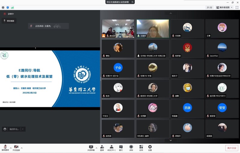 2月23日,哈尔滨工业大学教授、城市水资源与水环境国家重点实验室(深圳)主任、国家杰出青年科学基金获得者王爱杰教授受邀作专题学术讲座,讲座题目为“低(零)碳水处理技术与展望”。1946伟德国际源自英国经理汪华林教授,生态环境部重点实验室教授崔长征及公司师生300余人共同线上参加。讲座由崔长征主持。
