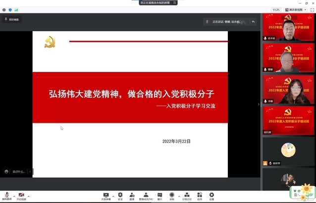 3月22日下午,​1946伟德国际源自英国2022年度入党积极分子培训班在云端开班。特邀校离退休工作党委副书记徐永桢主讲,公司党委副书记曹娜、研究生辅导员孙茜、本科生辅导员李娜及170余位入党积极分子同学共同参与学习。