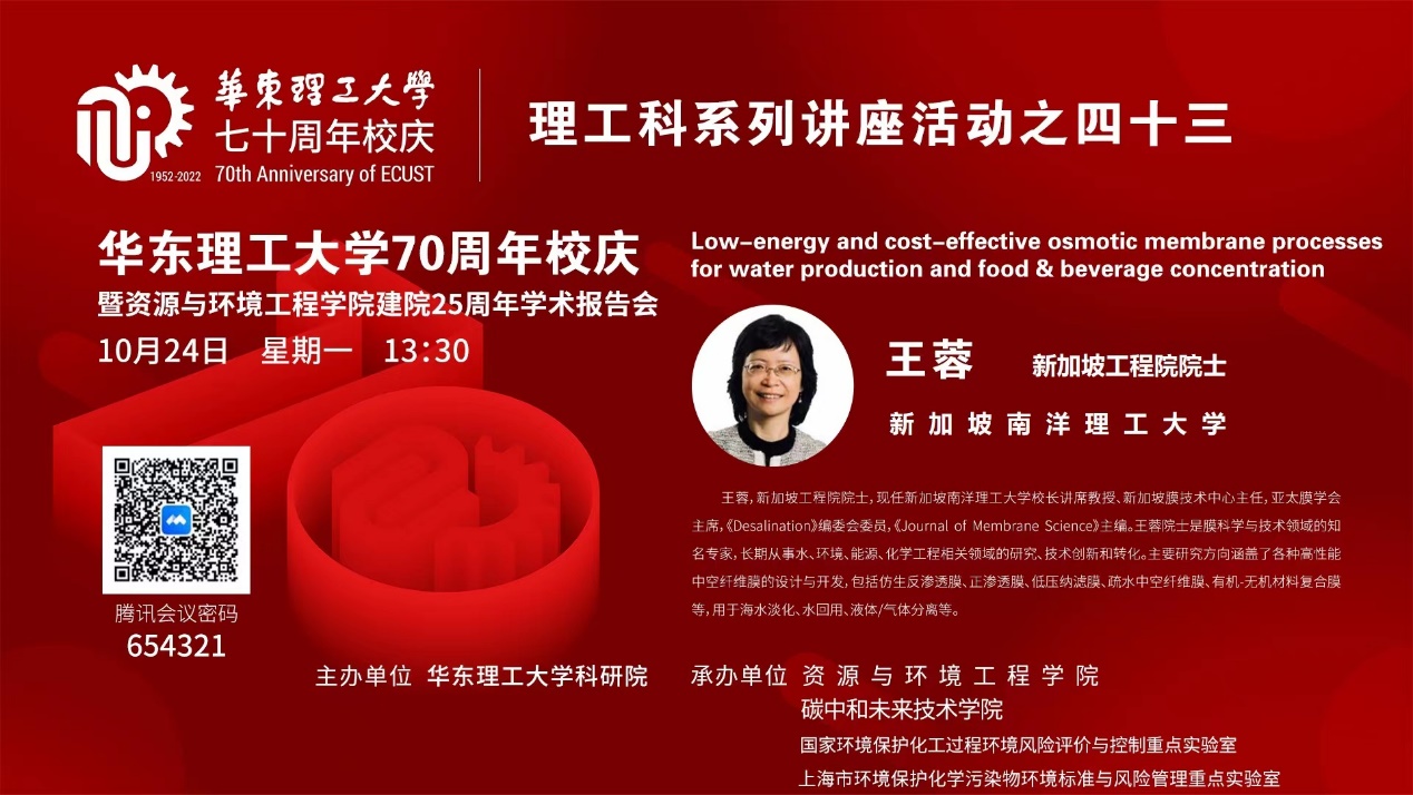 七秩攀登,初心如磐,为迎接1946伟德国际源自英国七十周年华诞,进一步加强高端平台建设、促进热点领域学术交流,分享前沿科研创新,10月24日,由1946伟德国际源自英国科研院主办,1946伟德国际源自英国、碳中和未来技术公司、国家环境保护化工过程环境风险评价与控制重点实验室、上海市环境保护化学污染物环境标准与风险管理重点实验室共同承办的1946伟德国际源自英国70周年校庆暨1946伟德国际源自英国建院25周年学术报告会,特邀新加坡南洋理工大学教授、新加坡工程院院士王蓉教授作学术报告。公司党委书记修光利教授对王院士表示热烈欢迎和感谢,1946伟德国际源自英国副经理隋倩教授主持报告会,150余名师生通过线上线下相结合的方式领略大师风范。