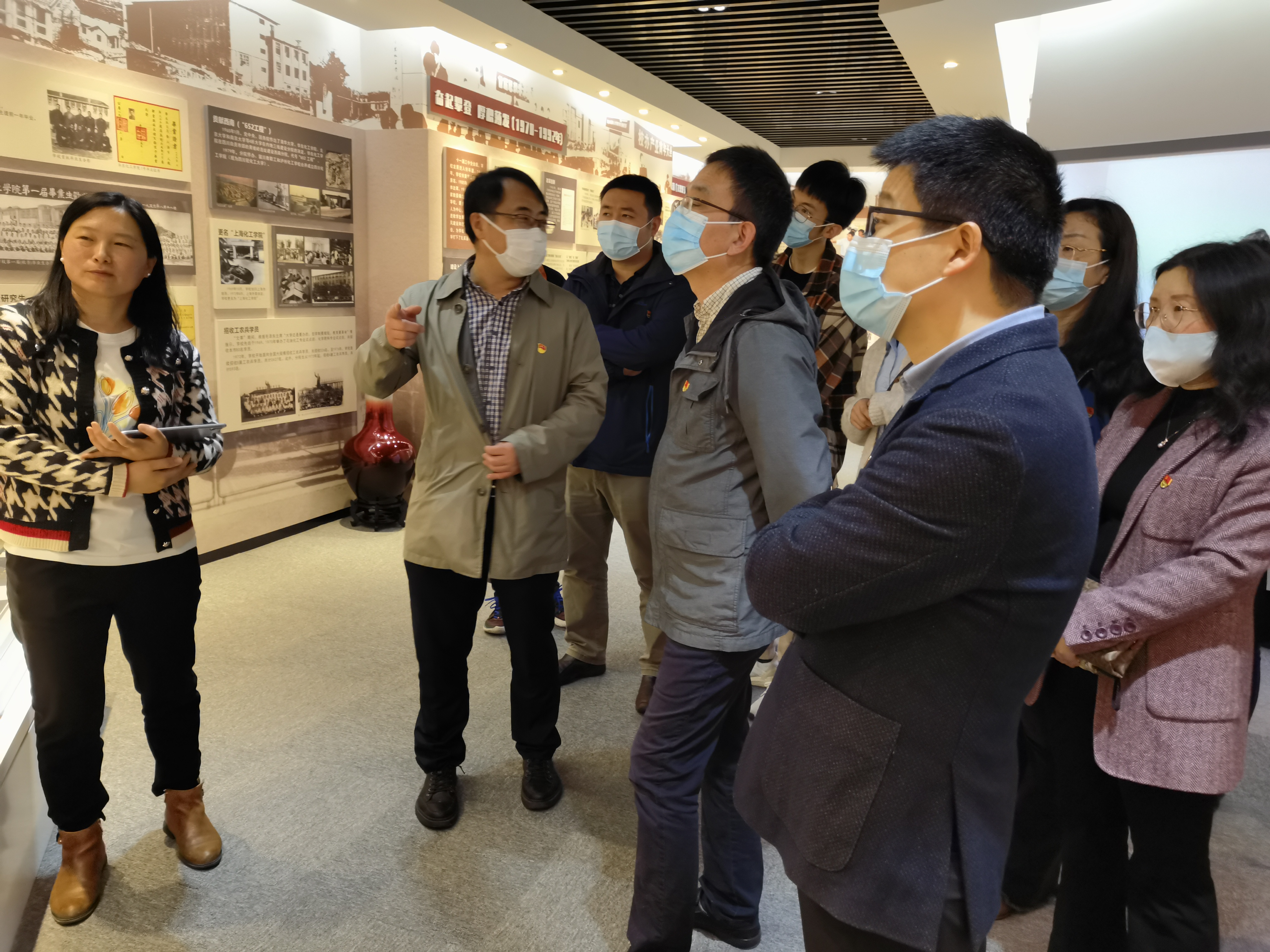 在档案馆副馆长段义严的带领和讲解下,大家参观了“序厅”“庚续薪传•校史沿革厅”“春华秋实•建设成就厅”“桃李芬芳•员工风采厅”4大区域,了解公司建校历程及70年发展史。70年间,华理从最初的筚路蓝缕,从无到有,到后来奋起攀登,厚积薄发,再到蜚声海外,声明远播,一代代华理人坚持党的领导,响应国家号召,不忘初心、砥砺前行,坚守科技报国初心,走出了一条改革创新、追求卓越的研究型大学发展之路。