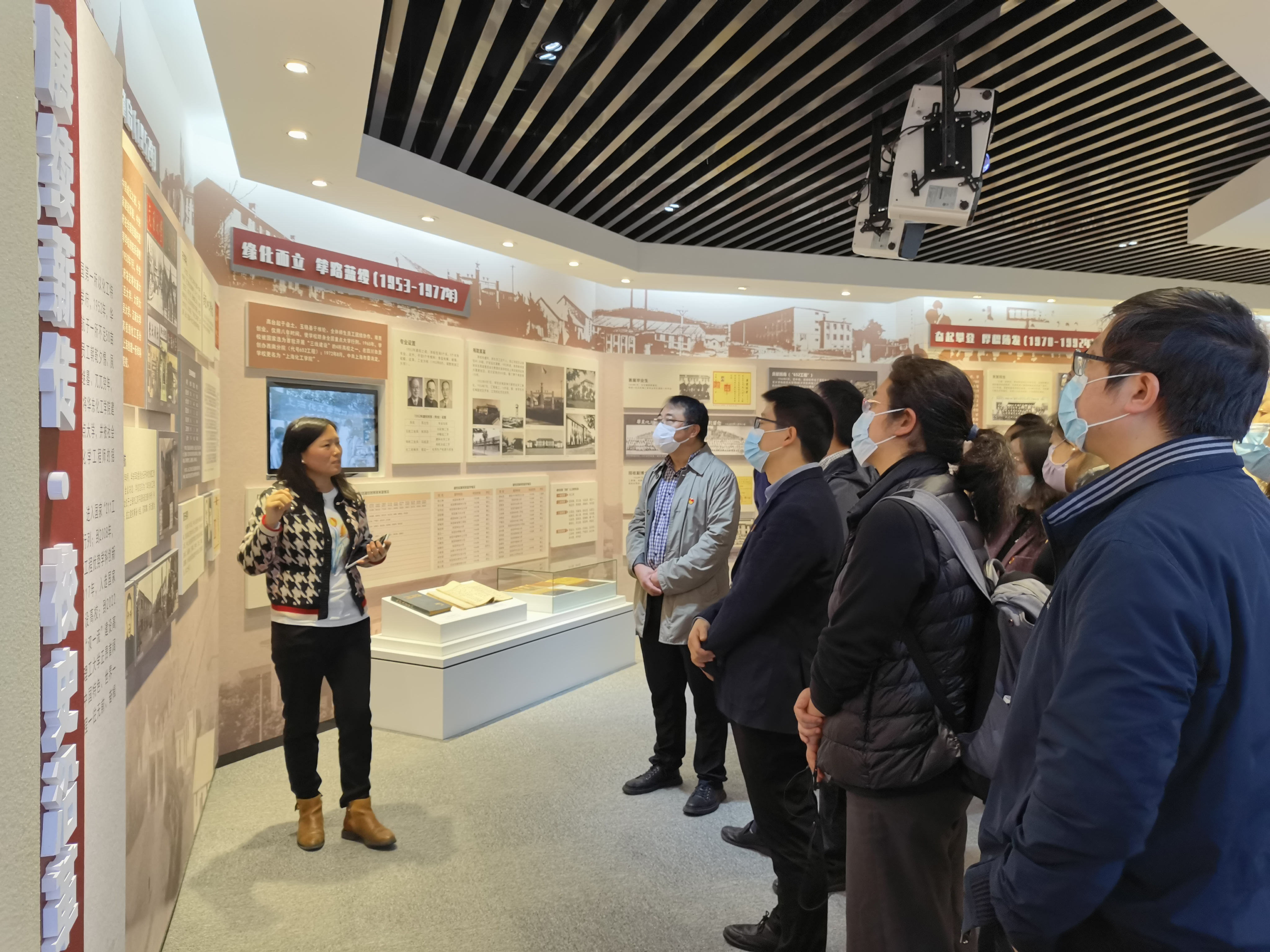 在档案馆副馆长段义严的带领和讲解下,大家参观了“序厅”“庚续薪传•校史沿革厅”“春华秋实•建设成就厅”“桃李芬芳•员工风采厅”4大区域,了解公司建校历程及70年发展史。70年间,华理从最初的筚路蓝缕,从无到有,到后来奋起攀登,厚积薄发,再到蜚声海外,声明远播,一代代华理人坚持党的领导,响应国家号召,不忘初心、砥砺前行,坚守科技报国初心,走出了一条改革创新、追求卓越的研究型大学发展之路。