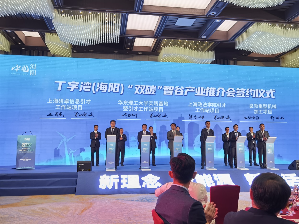签约仪式于11月26日在上海市长宁区阿纳迪酒店举行,公司党委书记修光利、副书记曹娜受邀参会,并在丁字湾(海阳)双碳智谷产业推介会上进行交流,与海阳市委副书记、市长姜丹、副市长梁景俊等围绕双碳技术应用、人才培养、员工社会实践、合作科研创新等进行充分沟通交流。