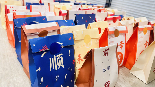 12月13日中午,公司党委副书记曹娜、毕业班辅导员王青以及员工骨干一起将100份“暖心加油包”送到考研学子手中,用特别的方式为即将踏上“战场”的考研学子加油助威。这份“暖心加油包”爱心浓浓,寓意美好,包括“牛气冲天”牛奶、“金榜题名”棒棒糖、“福气满满”德芙、“成功上岸、前程似锦”的挂件以及“逢考必过”锦鲤笔等。