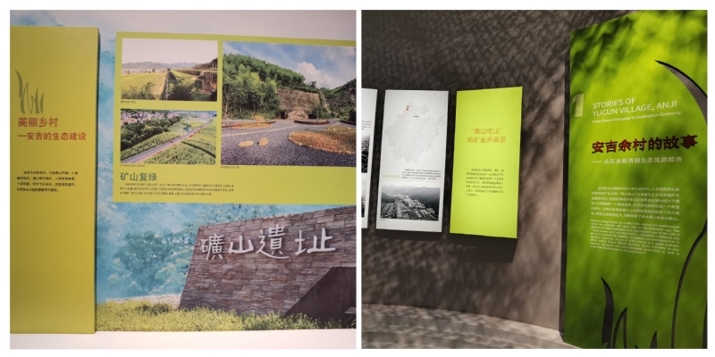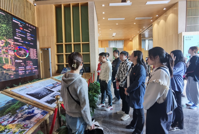 师生们跟随讲解员参观了安吉余村展示馆、文化礼堂等场所,深入了解了余村的发展历程。在“两山”理论的指导下,余村完成产业转型,关停矿山等污染产业,修复山塘水库、建设生态河道、改造节点景观、推行垃圾不落地与分类管理、截污纳管全覆盖。走绿色发展之路让矿山变成了花园,美了乡村,富了百姓,村民幸福感倍增。如今的余村,紧跟数字化潮流,着力打造智慧数字化便民生活新体系。