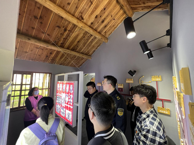 展馆外,连通“忆红居”的数十米青石阶路,15个金属铭牌记录了奉贤自建县至新中国成立的里程碑节点;路东侧有8个农耕器具展示,反映本地农耕文化演变史。一口“思源井”以及老屋树林旁“迷你长征路”景观,将“忆红居”红色情境氛围丰富起来。穿过迷你长征路和思源井,双方党员排列整齐鱼贯进入纪念馆,在讲解员的代领下进行参观。沈志昂先生是奉贤区第一位革命烈士,参加了广州起义,在解放惠来县时英勇牺牲。在展馆中,党员们看到在其妻子汤瑾精心保管下得以留存的一封封家书,字里行间的家国情怀都深深地感动了在场的每一位党员。