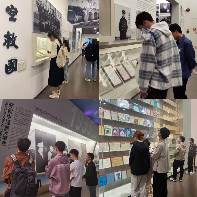 钱学森图书馆设有“人民科学家钱学森”事迹展览,分为“中国航天事业奠基人”、“科学技术前沿的开拓者”、“人民科学家风范”和“战略科学家的成功之道”四个部分。馆内收藏有钱学森生前实物、文献、手稿和书籍70000余份,珍贵图片1500余张,保存6万1千余件钱学森文献、手稿、照片和实物。在图书馆中,师生们在展区、展品及事迹照片前驻足观看,不时进行交流讨论。通过一批批珍贵照片、历史档案和亲笔书信,师生们生动了解了钱学森志在强国、心系人民的爱国精神,严谨要求、勇攀高峰的科学精神、淡泊名利、宁静致远的奉献精神,对人民科学家、党的科技功臣钱学森波澜壮阔的一生有了更加深刻和立体的了解。