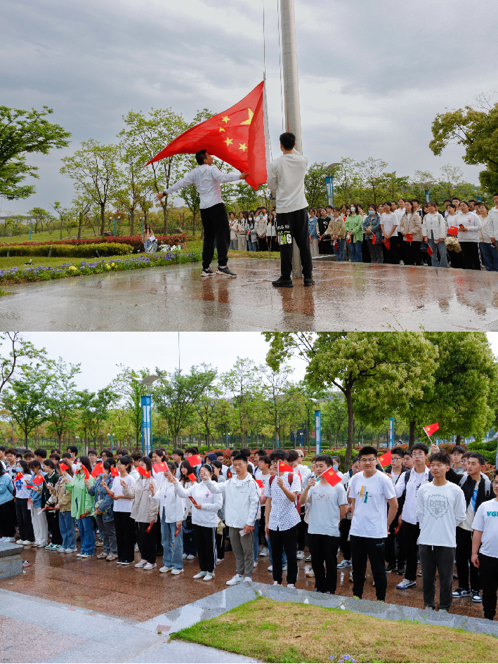 上午7时,伴随着激昂的《义勇军进行曲》,全体师生注视着五星红旗冉冉升起,一同高唱国歌,鲜艳的五星红旗迎风飘扬,在晨光下熠熠生辉。