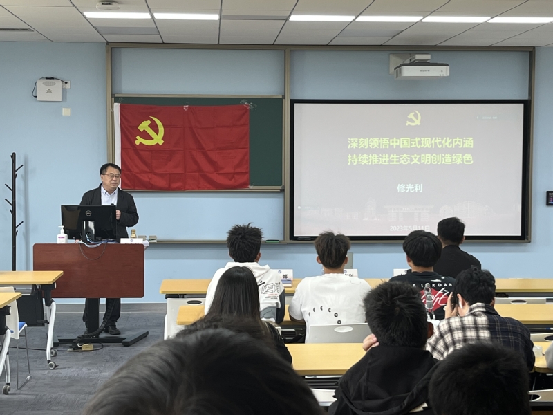 为深入学习贯彻党的二十大精神,扎实开展学习贯彻习近平新时代中国特色社会主义思想主题教育,5月11日中午,公司党委书记修光利为奉贤校区员工讲授了一堂题为“深刻领悟中国式现代化内涵,持续推进生态文明创造绿色”的主题党课,本科生、研究生积极分子、公司本科生辅导员参加学习。