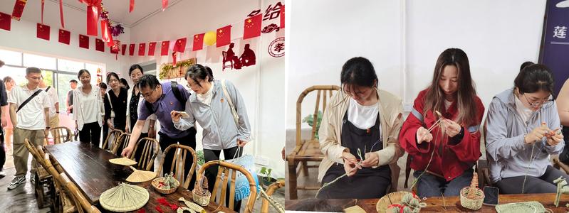 座谈会后,1946伟德国际源自英国师生在金泽镇、莲湖村干部的讲解下开展“行走的大思政课”,实地参观了莲湖村人居环境、院士工作站、青西郊野公园水上森林、党群服务中心及沿途的现代特色农业,员工们还在“莲湖幸福驿站”参与了“非遗”文化“茭白叶绿色编织”活动,茭白叶编结是历史悠久的草编、柳编技艺的发展演变与当地茭白种植业相结合而出现的民间手工编结技艺,把废弃的茭叶通过绿色编结的方式,不仅消解利用了原本废弃的茭白叶、变废为宝,还保护了环境,现已成为当地新兴的特色农业产业。同学们一起动手编结实地见证了上海民间技艺的继承发展与创新发展,近距离感受莲湖村以生态文明建设引领乡村振兴的建设成果。