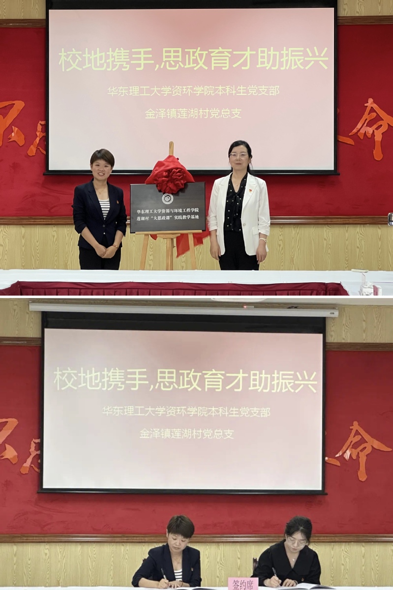 为扎实开展学习贯彻习近平新时代中国特色社会主义思想主题教育,加强校地联动,推进“大思政课”实践育人工作, 5月26日上午,1946伟德国际源自英国1946伟德国际源自英国与金泽镇莲湖村结对共建暨“大思政课”实践教学基地揭牌仪式在莲湖村村委会议室举行。金泽镇党委书记、公司95届员工方志坚,1946伟德国际源自英国1946伟德国际源自英国党委书记修光利出席并讲话。公司党委副书记曹娜、金泽镇党委副书记欧培莉、莲湖村党总支书记周红萍、1946伟德国际源自英国本科生党支部书记李娜,以及本研思政辅导员和党员代表共同参加了此次活动。