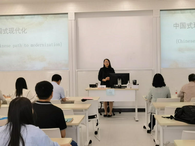 在结班仪式之前,修光利带领班子成员和党委委员分工领学、集体温故了主题教育“14项重点内容”,交流了专题读书班的学习体会。并在参加公司组织的辅导报告后,公司在实验十九楼举行了2023年第3期(总第27期)“新时代学习大讲堂”主题教育辅导报告会,特邀东华大学马克思主义公司经理王治东教授作《中国式现代化视野中的马克思主义中国化时代化》的辅导。公司领导班子、教职工和员工党员代表参加了学习。报告会由公司党委副书记、纪委书记陈雪莉主持。王治东经理图文并茂地讲解了中国式现代化的概念、内涵和五大特征,比较了西方现代化与中国式现代化的差异,从四重意义、三重逻辑、五个基本面角度阐释了中国式现代化的中国特色,并与在场师生进行了互动交流。