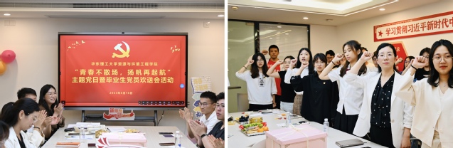 环社20级本科生、预备党员薛诚皓同学为毕业生党员献唱《凤凰花开的路口》,祝福毕业生党员前程似锦、鹏程万里。毕业生党员李书馨活动后饱含深情地说:“党组织的深切关怀将永远铭记于心,虽然即将离开公司,但将牢记党员身份,在今后的工作岗位上发挥先锋模范作用。”