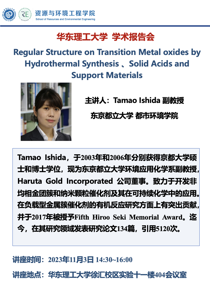 【讲座报告】Regular Structure on Transition Metal oxides by Hydrothermal Synthesis、Solid Acids and Support Materials