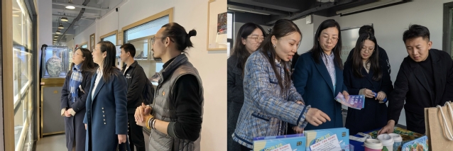 通过展览讲解与影片观看,陆鸣书记和王志颖书记简要介绍了上海工艺美术职业公司以工艺美术为办学底蕴的优势与特色,以及在非物质文化遗产文化传承与创意人才培养教育等方面所取得的成果。