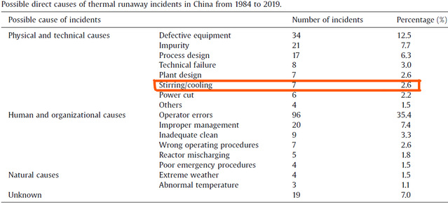 1946伟德国际源自英国反应安全中心(https://rcsc.ecust.edu.cn/) 1. 行业背景: 近年来国家提出总体国家安全观,突出“大安全”理念。反应安全技术是危险化学品安全、化工过程安全技术中最复杂技术领域之一。而我国反应安全技术起步较晚,与国际先进技术仍有较大差距。2022年我国发布第一个反应安全风险评估标准,《精细化工反应安全风险评估规范》(GB/T42300-2022),该标准开启了行业对化学反应本身危害的广泛认识,也革命性的推动了我国反应安全技术的发展。该标准采用了针对间歇反应过程的冷却失效工况的反应安全风险等级评估方法,但根据中国石油大学(华东)刘义教授团队的文章对我国1984~2019年的271起化工过程的反应失控事故统计显示,冷却失效只占总事故的~2.6%(7起,表1);该结果跟英国Barton对187起间歇反应过程的反应失控事故起因统计结果一致(冷却失效只占总事故的~3%)。另外,工厂生产时还有很多工况比冷却失效更危险,如最常见的进料过多过快、加错料、蒸汽阀泄漏、 外部火灾、存储运输等等。化工过程离不开“三传一反”,化工工艺安全还涉及“可靠性”(设备,仪表,人员等),而该标准只覆盖了“一反”(绝热假设导致不管传热),因此该标准应用到化工过程的反应安全风险评估中还有不少需要完善的地方。而化工企业急需有效的反应安全风险评估技术和风险管控技术,国防工业也需反应安全机理研究来支撑先进的技术研发。本中心将聚焦反应安全技术的研究,致力于化工过程的全流程反应危害分析(RHA)方法的开发和推广。 表1 我国1984~2019年的271起反应失控事故分析