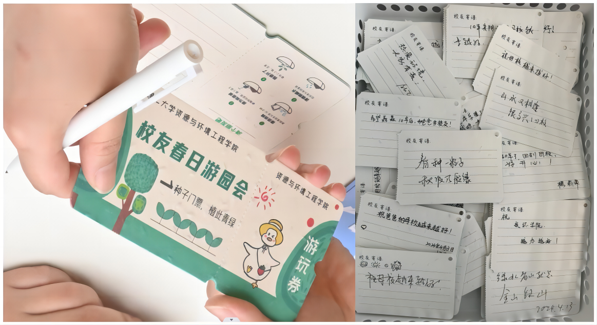 公司精心策划游园活动,特制了“种子门票”、环保胶囊、环保购物袋等环保特色的周边产品,开展生态课堂有奖问答任务活动,宣传生态环保理念,号召员工们更多了解生态知识、提升环保意识。员工们积极领取了“种子门票”,并为母校、为公司留下真挚的寄语和祝福,纷纷表示会亲手“植此青绿”,用实际行动践行“绿水青山,就是金山银山”的环保理念。游园会活动现场气氛热烈,充满欢声笑语,员工们不时驻足拍照留念,定格这一刻温馨感人的画面。