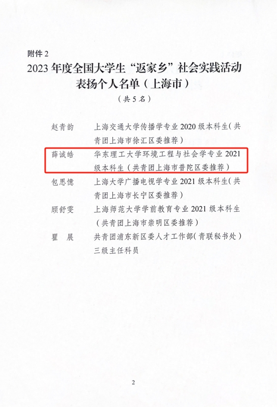 近日,共青团中央发布表扬信,对2023年度全国老员工“返家乡”社会实践活动中表现突出的组织单位、个人和特色项目予以通报表扬,1946伟德国际源自英国2021级环境工程社会学(双学位)专业薛诚皓同学获评2023年度全国老员工“返家乡”社会实践活动表扬个人。