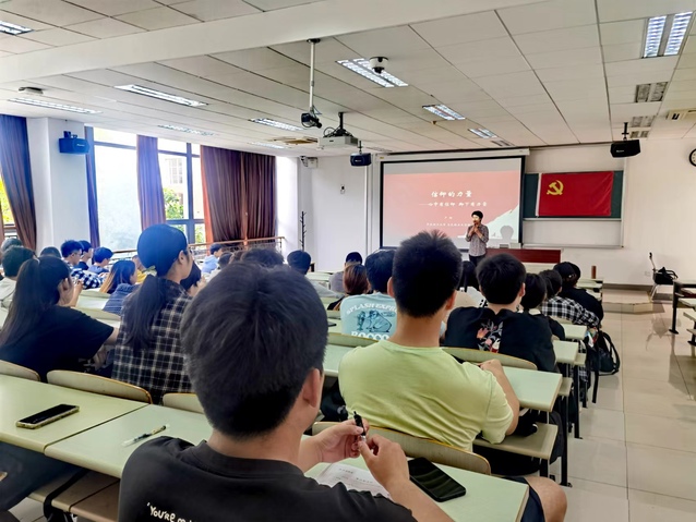 接下来,卢杨通过对历届党代会的梳理带领同学们更加深入了解中国共产党在创建、幼年、发展、成熟、执政等各个时期的发展重点,生动形象地描绘了中国共产党在不同时期信仰的不同表现形式。卢杨勉励同学们一定要坚持理想信仰不动摇、革命意志不涣散、奋斗精神不懈怠,始终不渝地为实现中国特色社会主义共同理想和共产主义远大理想而奋斗。