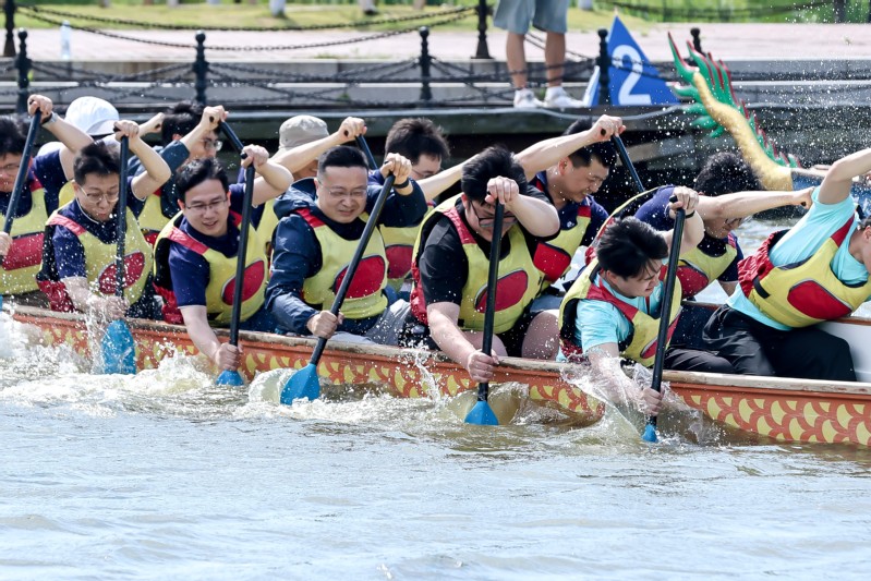 随着比赛哨声响起,12支参赛队伍斗志昂扬,一支支龙舟如离弦之箭,挥桨疾驰,劈波斩浪。经过激烈角逐,最终上海天然气管网有限公司拔得头筹,上海华谊能源化工有限公司和上海逸清环境科技发展有限公司分获亚军和季军。