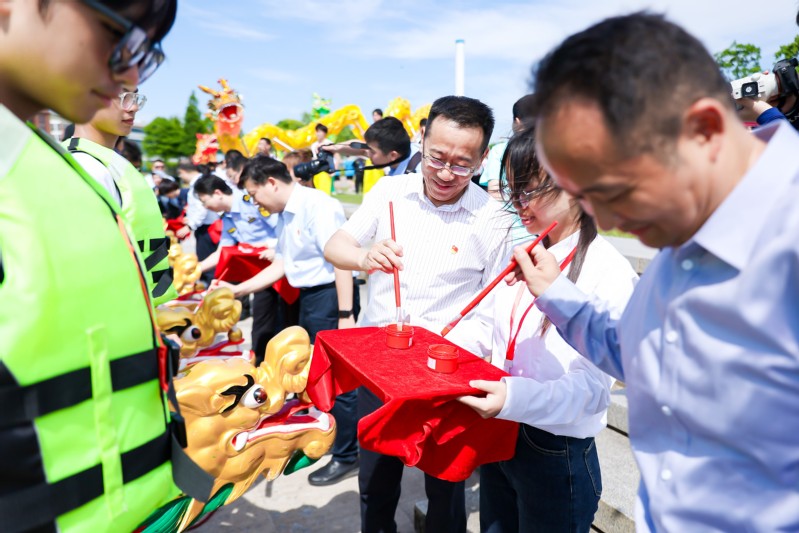 黄沈发、章营军、伏晴艳、张之崟、周兆勇、郑必军、俞峰、齐康等8位领导为龙舟点睛,龙舟比赛正式开始。