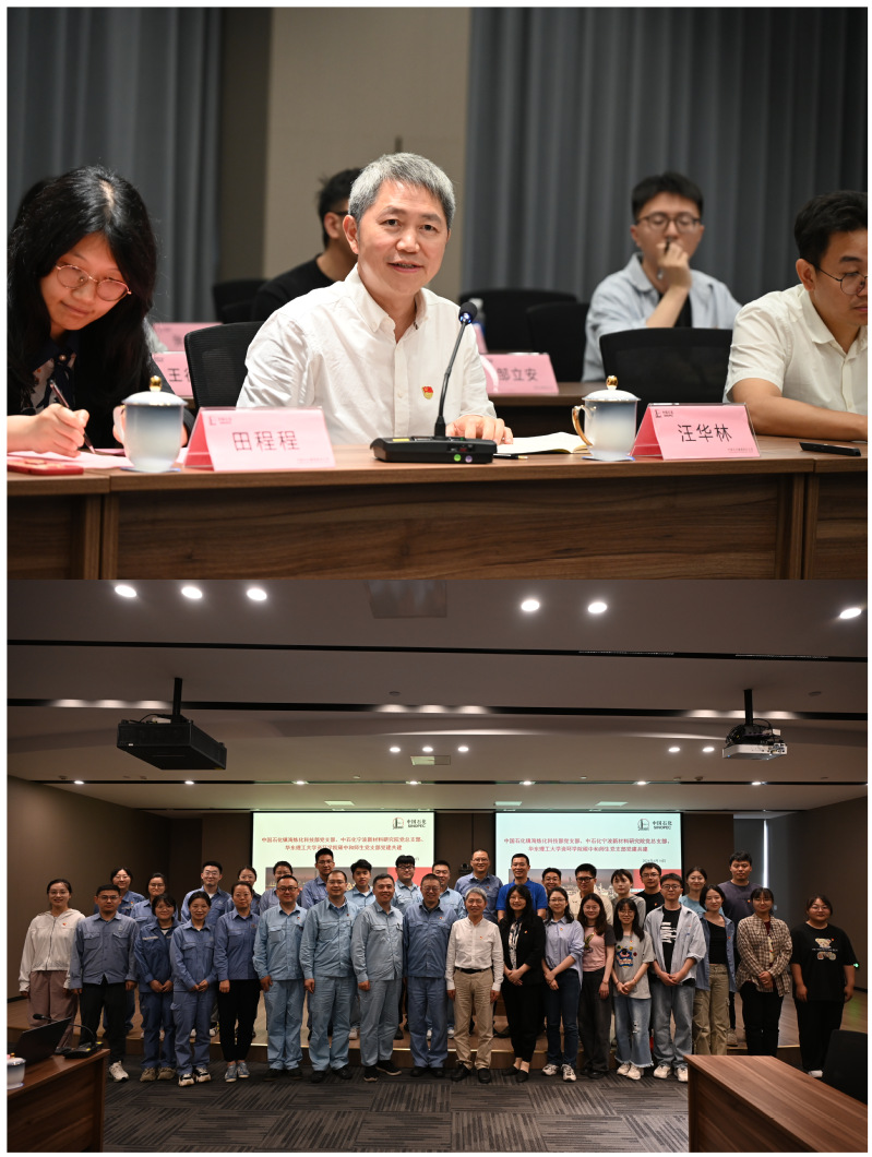 最后,汪华林院士作总结讲话。他谈到要坚持生态文明建设,牢记习近平总书记嘱托,充分发挥企业在应用基础研究中的“出题者”“答题者”和“阅卷人”作用。他指出,各党支部应发挥各自优势,在公司产品、教材编写、一流课程建设和项目合作等领域加强合作,努力实现科技、教育、人才和产业四融合,推进零碳石化,共创绿色未来。