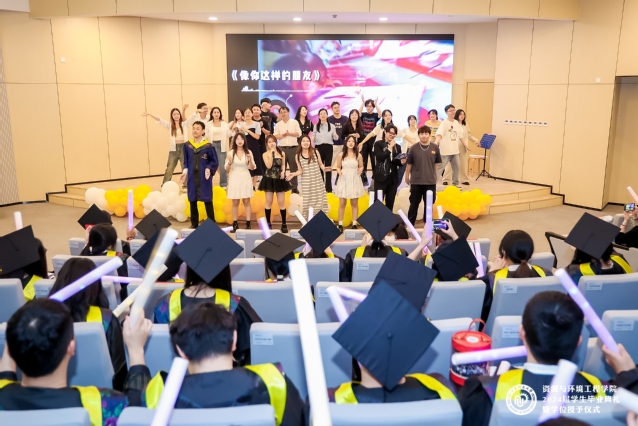 典礼后还举行了2024届毕业歌会。毕业生们以及丁思佳、高云飞等老师用歌曲、舞蹈及吉他弹唱等形式表达了对同窗和母校的眷恋不舍之情和对毕业生的美好祝愿。能经230班于子轩作为在校生代表为毕业学长送去歌声祝福,环境201班谈思含、能源201班王松在歌会上逐一分享《四年后的一封信》,与四年前刚入学的自己进行了一场心灵对话。最后,全体人员共同合唱歌曲《像你这样的朋友》,毕业歌会圆满落幕。
