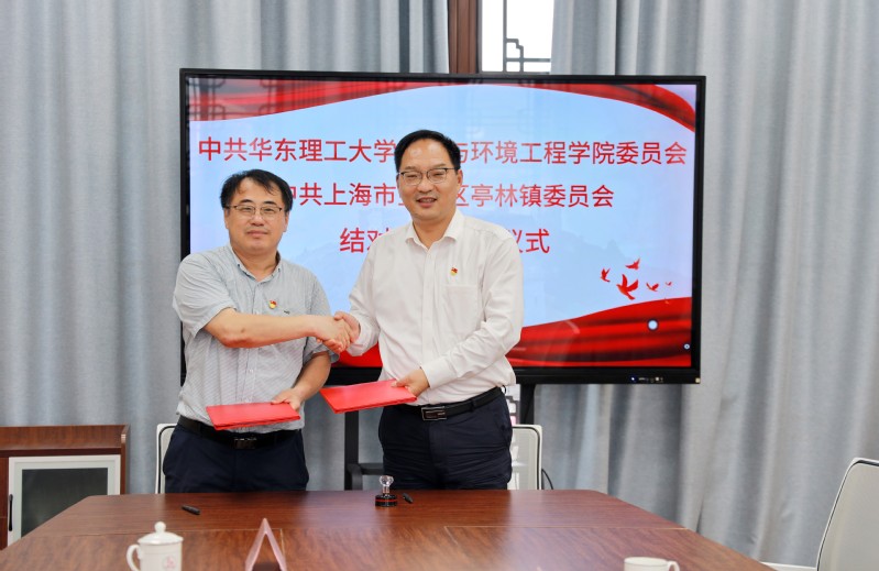 金山区亭林镇党政办负责人李星星,党群办负责人王春欢,规建办副主任、公司2010届员工张超,公司党政办主任石晶、环境工程系副主任蔡正清、辅导员王青一同参加此次共建活动。