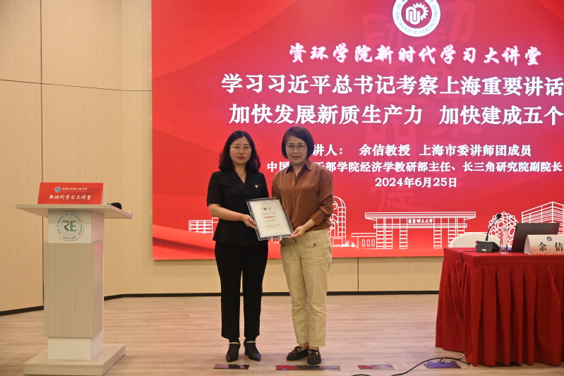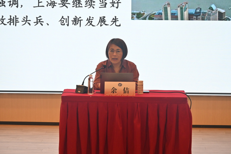 余佶介绍了习近平总书记多次考察上海的深刻背景和习近平总书记为上海奋进新征程擘画的宏伟蓝图,重点带领大家学习习近平总书记2023年11月在上海考察时发表的重要讲话精神。余佶还从经济学的角度,带领大家学习习近平总书记关于新质生产力的论述、新质生产力的内涵、加快发展新质生产力的途径等。她号召师生深刻体悟和践行“四个放在,五个中心,四大功能”,以科技创新为引领,努力实现高水平科技自立自强新突破;以改革开放为动力,努力打造国际合作发展新优势;以国家重大战略为牵引,努力实现“五个中心”建设新提升;以城市治理现代化为保障,努力谱写人民城市建设新篇章。加快发展新质生产力,推动上海高质量发展,在推动中国式现代化中发挥龙头带动和示范引领作用。