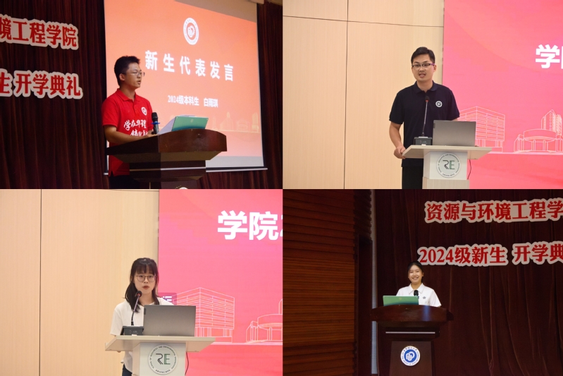 清洁能源技术专业2023级研究生黄钦威作为在读研究生代表发言,分享了自己在云南寻甸的支教经历以及在科研学习过程中践行“汗水哲学”的故事。2022级本科生江雯结合自身经历向本科新生们传授老员工活锦囊。2024级资源与环境领域工程博士王征程、2024级能环试验班本科生白雨琪分别分享了他们入学以来的感受以及对未来的期许,表示将继续保持旺盛的学习热情迎接新的挑战。