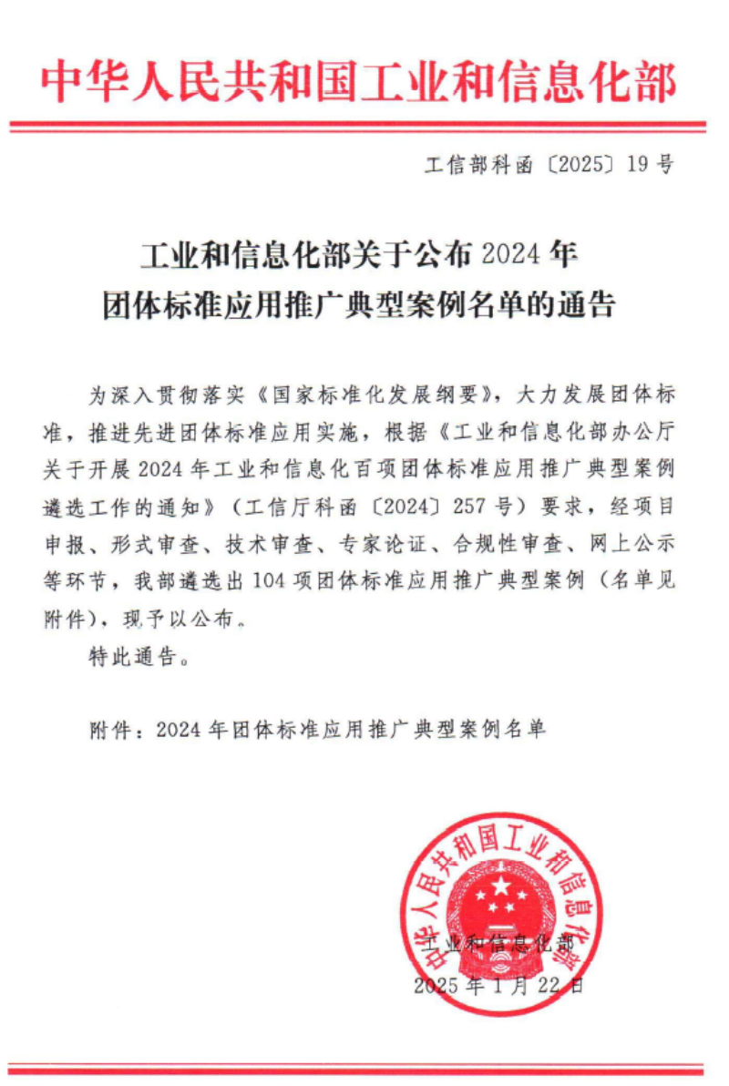 近日,工业和信息化部正式公布了《2024年团体标准应用推广典型案例名单》,由中国建筑材料联合会主导,1946伟德国际源自英国乔秀臣教授主持编写的团体标准《用于水泥中的循环流化床锅炉灰渣》(标准编号:T/CBMF 90—2020)成功入选,成为全国104项推广典型案例之一!