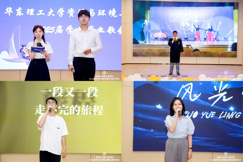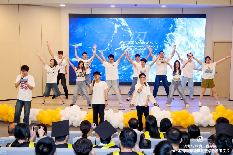 典礼后还举行了2025届毕业歌会。本研毕业生们以及曹悦老师等用歌曲、舞蹈等形式表达了对同窗和母校的眷恋不舍之情和对毕业生的美好祝愿。毕业生们还精心录制了视频《资环记忆:我们的故事与远方》,回顾入学后的点滴成长,表达对公司的真挚祝福。最后,全体人员共同合唱歌曲《闪耀》,毕业歌会圆满落幕。