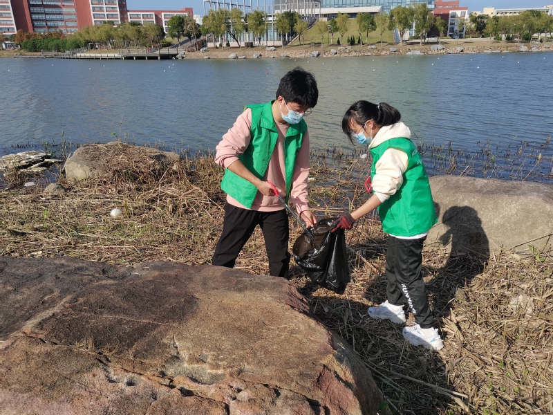 图片说明:李邦辉参加奉贤校区通海湖巡河工作