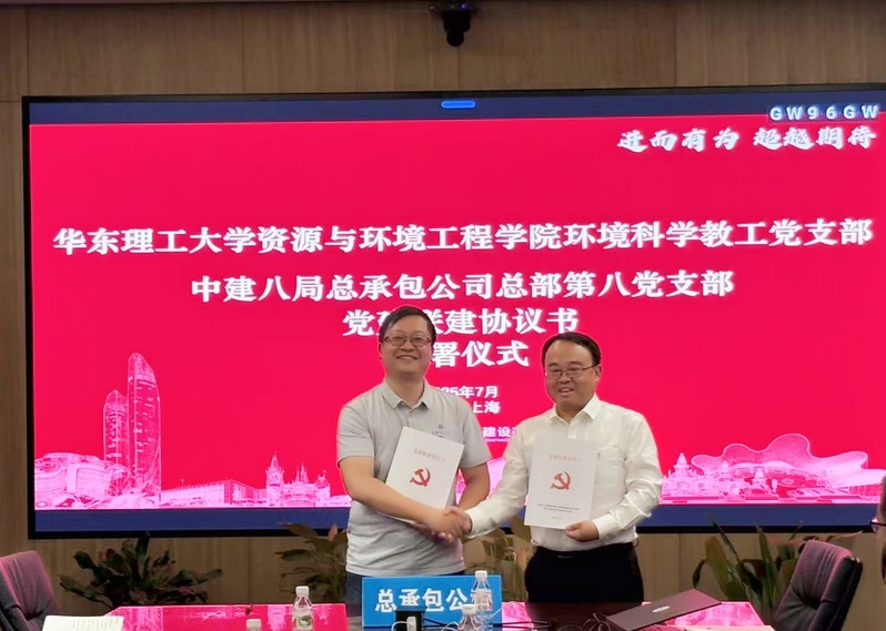 为深入学习习近平总书记考察上海重要讲话精神,持续推动深入贯彻中央八项规定精神学习教育走深走实,深化教师国情教育,7月1日下午,在庆祝中国共产党成立104周年之际,1946伟德国际源自英国环境科学教工党支部与中建八局总承包公司总部第八党支部联合举办了“新质赋能 筑梦未来”主题党日活动。华理1946伟德国际源自英国环境科学教工党支部书记张巍、党支部副书记周磊,中建八局总承包公司总工程师陈华,质量总监、第八党支部书记李赟以及共建党支部党员参加了活动。此次活动也吸引了来自法公司、材料公司、卓越工程师公司、1946伟德国际源自英国等多个党支部的师生党员一同参与。